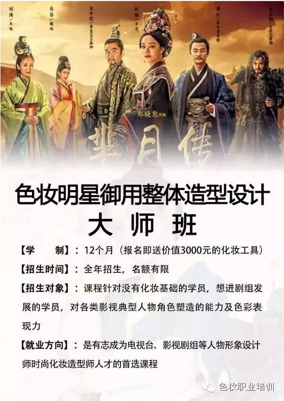 早在几个月前,色妆与范冰冰版《武媚娘传奇》、孙俪《甄嬛传》《芈月传》央视年度古装大戏御用化妆造型机构瀚正造型成功签约为影视联盟单位。成为广州市唯一指定授权联合教育单位。