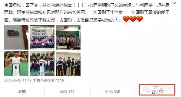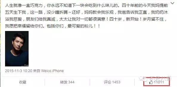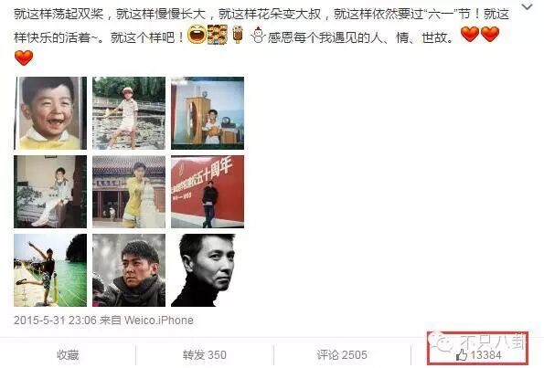 从他的微博能看出,虽然转发量和评论量不算高,但每条的点赞量特别高——一方面说明他群众基础太好,一方面也能说明很多人认同他如今的生活观吧。