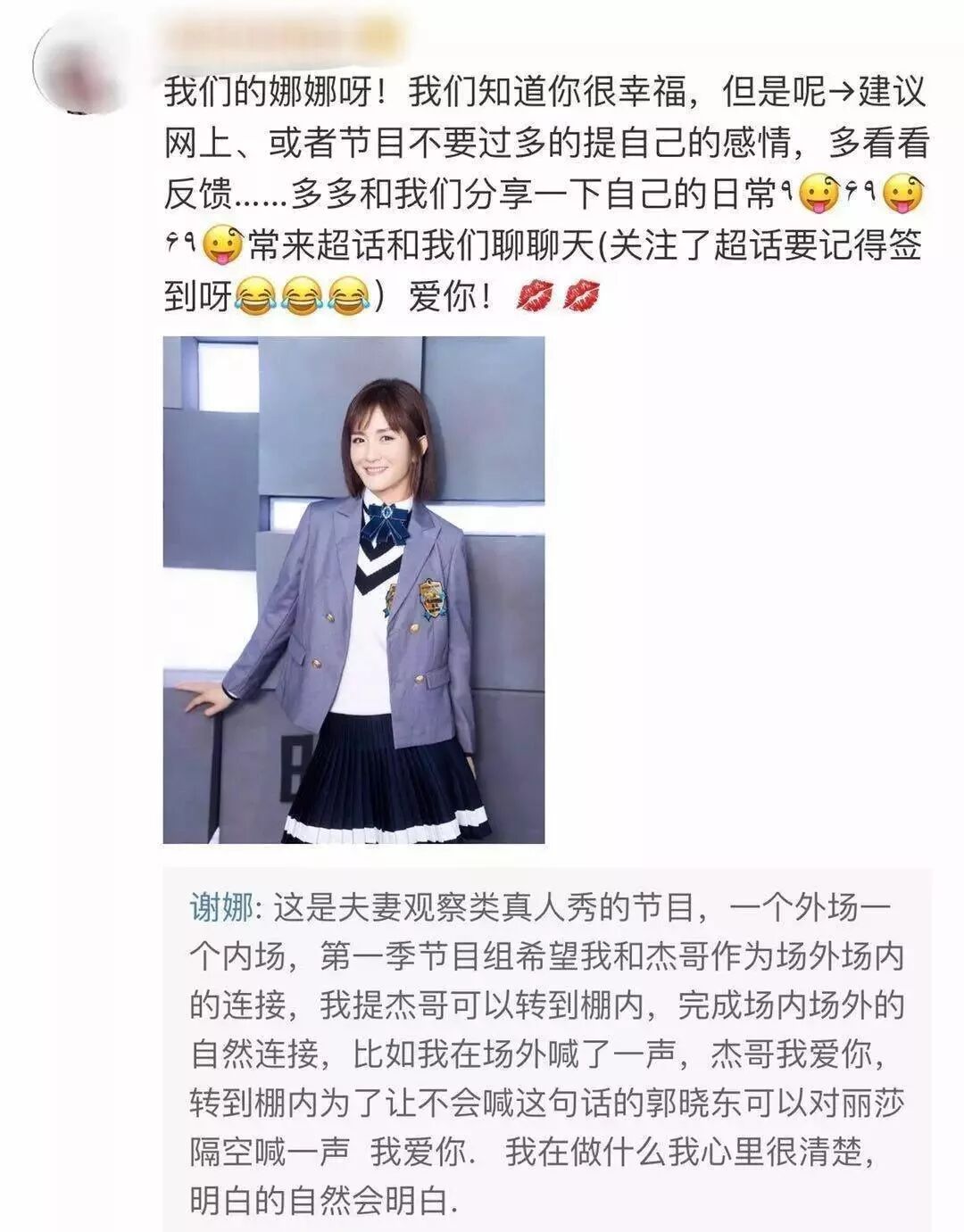 官方粉丝在超话给谢娜提建议,不要过多地提自己的感情。