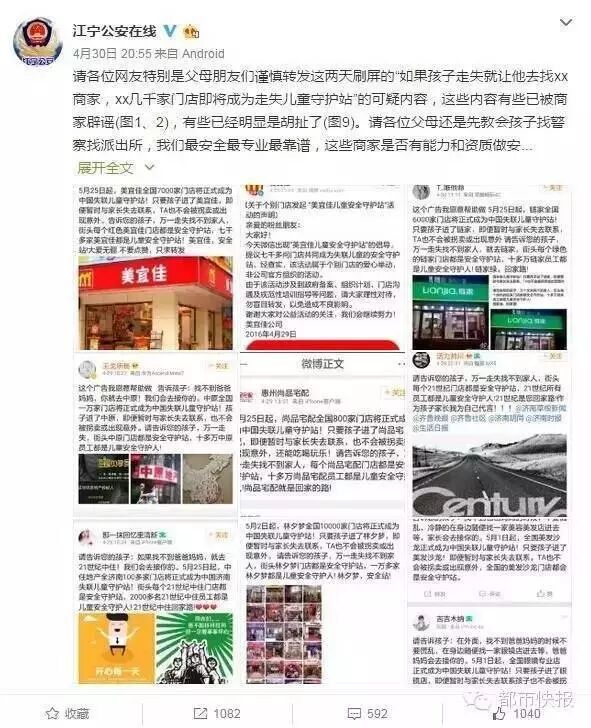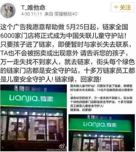 此外,对于之前对于链家门店成为中国失联儿童守护站的一篇报道中存在错误引用的情况,网警也进行了辟谣——“每年中国有20万儿童失踪”,这一数字早就被证实为谣言。