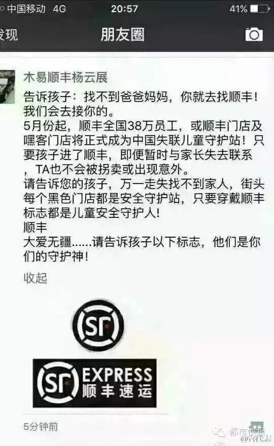 文中表示,所有向走失儿童伸出援助之手的个人和企业都是值得肯定的。