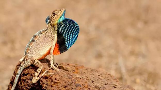 还有下面这个爱登堡蜥蜴(Attenborough's fan-throated lizard):