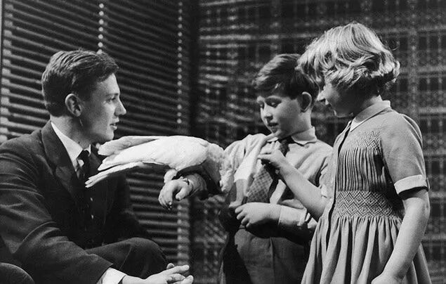 爱登堡给查尔斯王子和安妮公主介绍自己从野外带回来的鹦鹉