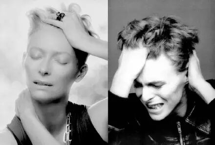 特别是Tilda Swinton,一直傲于自己有一张Bowie脸,总是以“女版 Bowie”的形象出现。