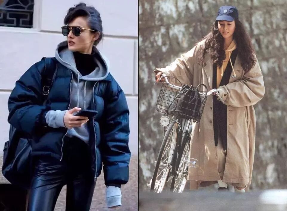 卫衣叠穿的外套选择大衣相对更有气质一些,但是小个子穿个棉袄、羽绒服同样也很时髦。