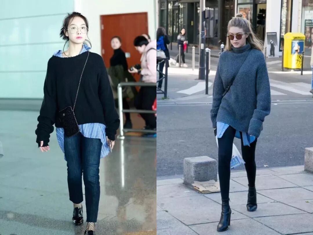 毛衣要尽量选择纯色,因为叠穿本来就是比较复杂的穿法,色彩太多会加重视觉负担哦。