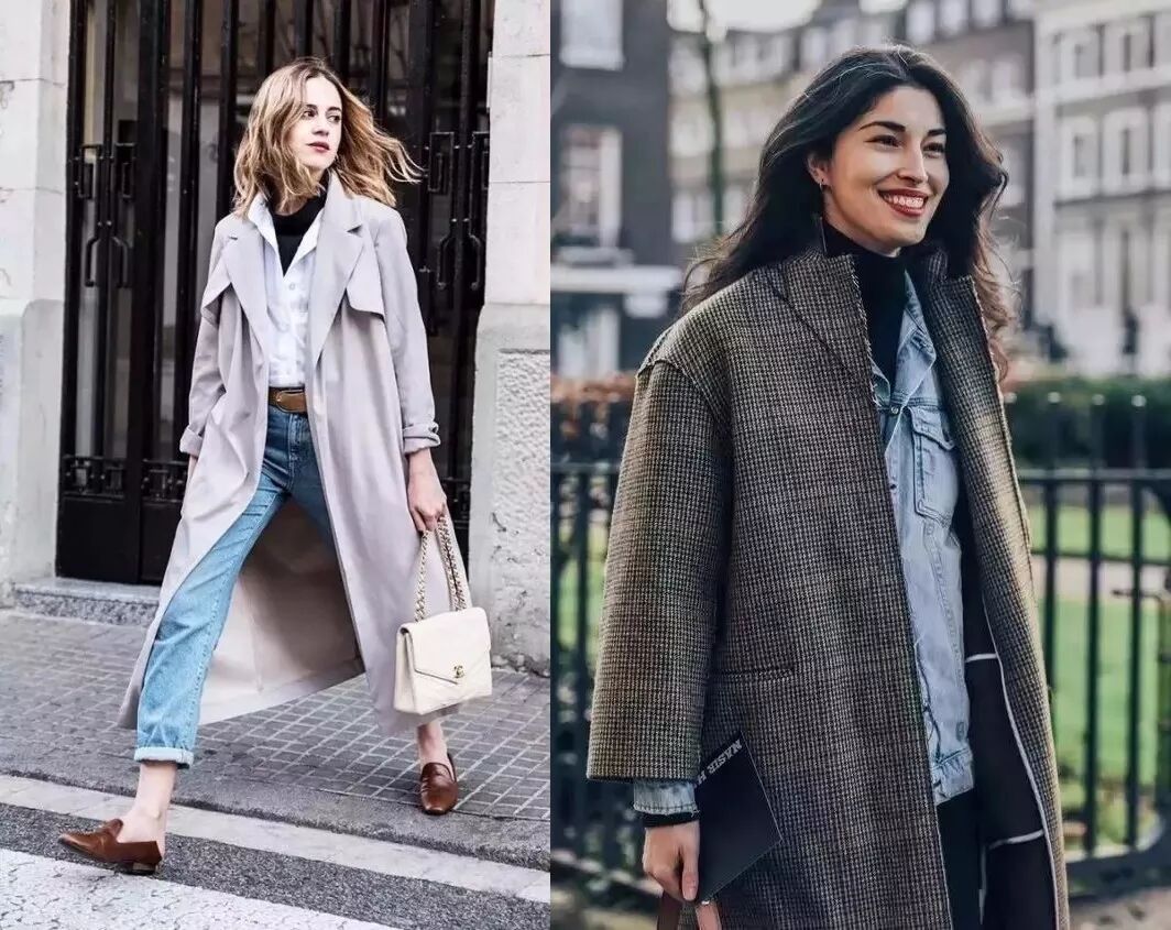 再叠穿一件风衣或大衣,让层次感更丰富。在配色上以同色系的顺色或简约为主,否则容易重点太多显得臃肿繁复。