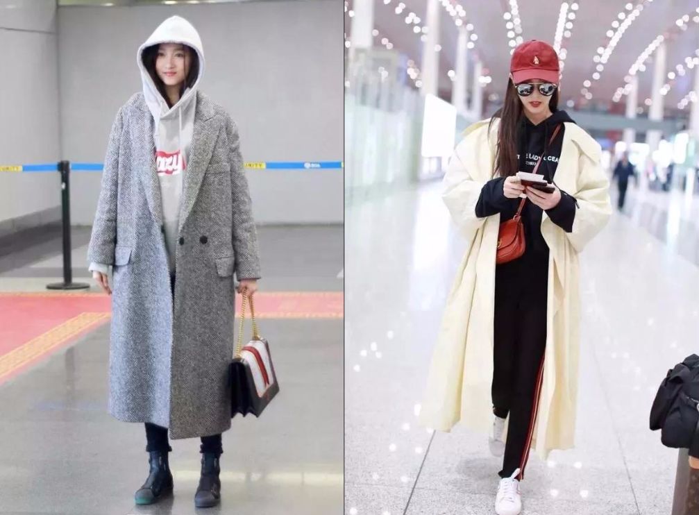 卫衣叠穿外衣算是很酷很休闲的一种穿法,在日常穿搭中也很常用。女明星都爱用它来搭配长大衣,气场全开的同时又带有一丝酷劲。