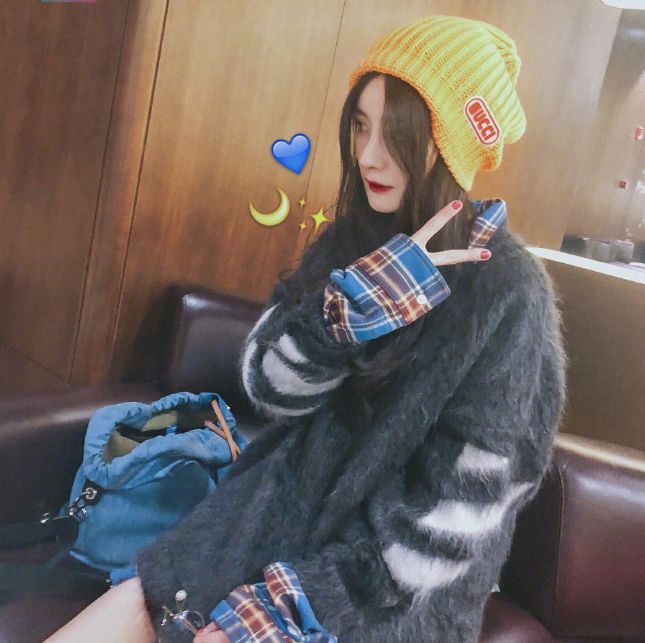 想要保暖一点就穿上毛衣,杨幂用毛茸茸的毛衣搭配格纹衬衫,既实穿又有设计感,同时少女感满分。