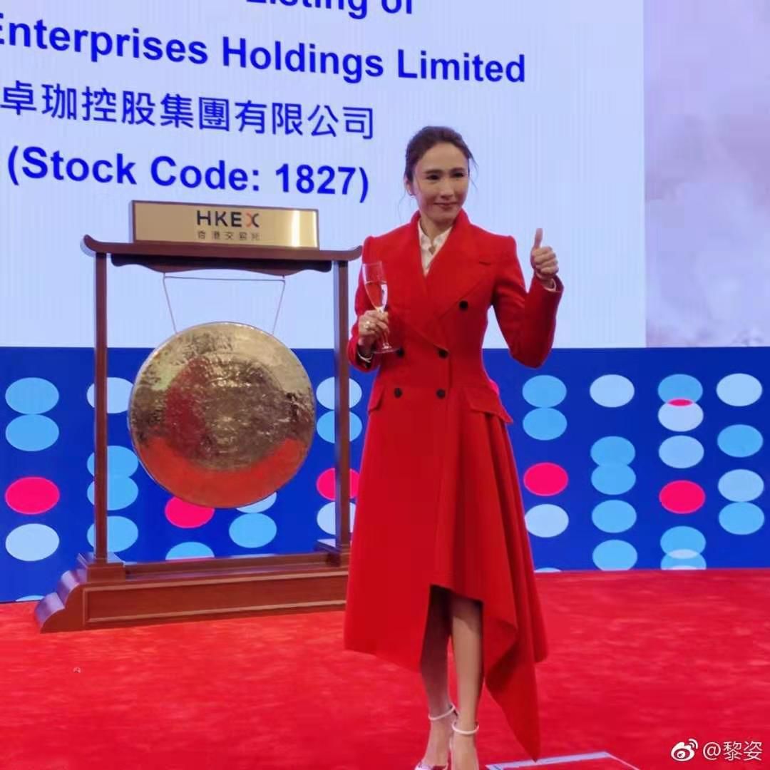 一身干练红装的她,现身港交所,出席旗下公司卓珈控股由创业板转主板的上市仪式。