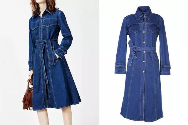 MO&Co.长袖翻领腰带牛仔A字连衣裙