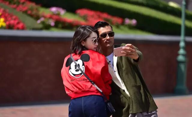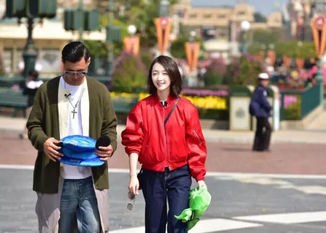 小蝌蚪和六叔去迪士尼的这次,让大家看到了余文乐的另一面——大男孩的一面~由于是去游乐园,所以小蝌蚪选择了裤装,红色米奇短款夹克和深蓝色阔腿牛仔搭配,再背一个小挎包,透着一股古灵精怪的感觉。