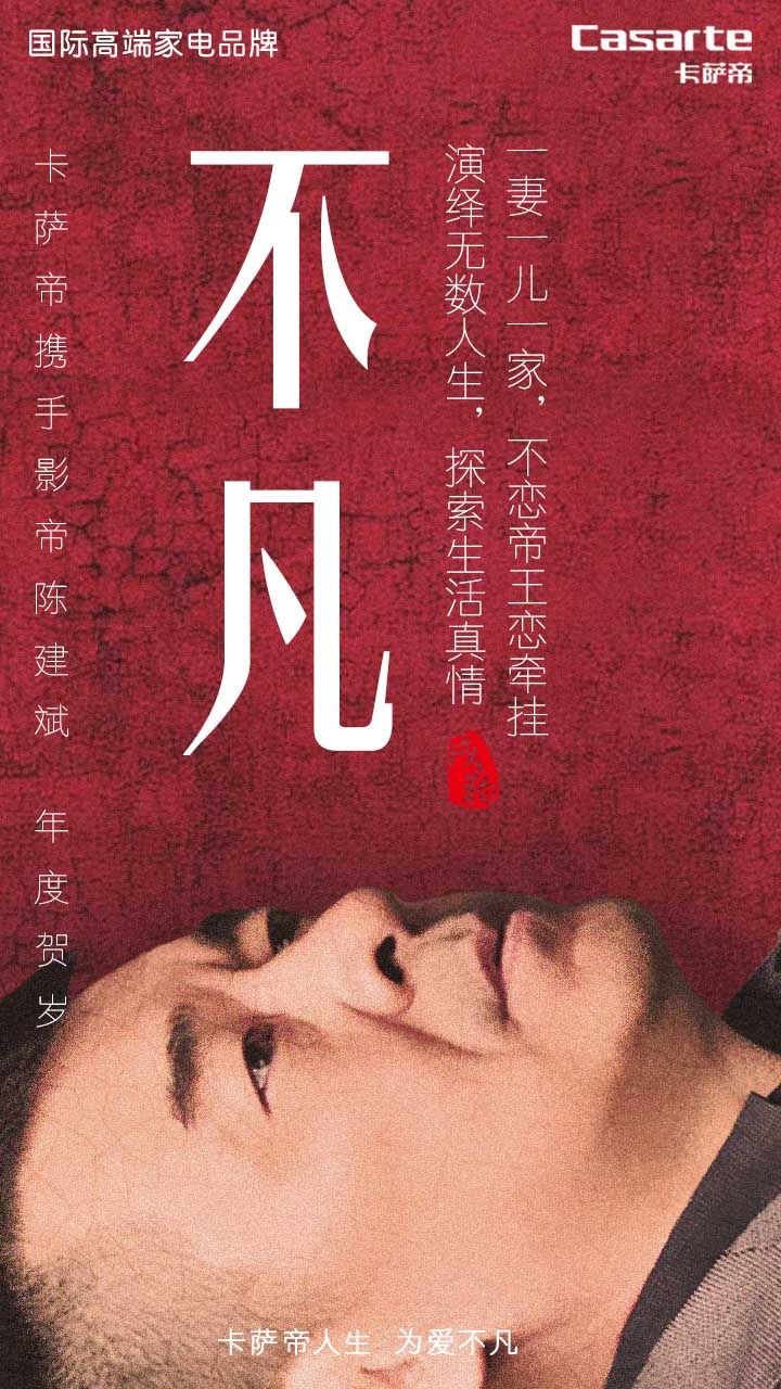 回归家庭改变了陈建斌,让他的人生变得更加不凡,这正与卡萨帝的“为爱不凡”的品牌理念不谋而合。为爱回归,因爱不凡,2018年,国际高端家电卡萨帝提出了“卡萨帝人生,为爱不凡”新的品牌理念,意旨致敬每个人的不凡人生。新年伊始,陈建斌为卡萨帝拍摄了一部年度贺岁大片,视频中,陈建斌向观众展现自己与妻子、孩子日常相处的温馨点滴,以自己的亲身经历,完美诠释了卡萨帝十年如一日的“为爱缔造不凡”。