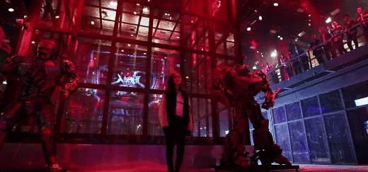 不同于《机器人争霸》中的安吉拉大宝贝“ 迟到出场 ”,还在现场定位走了个秀。
