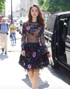 林心如在参加巴黎时装周的时候就特意选了一条蓬蓬短裙,恰好就把刚刚凸起的小肚子给遮住了,而且特别有减龄的效果。