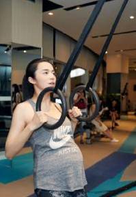 姚晨也一样,怀二胎的时候坚持健身,强度一点都不小。