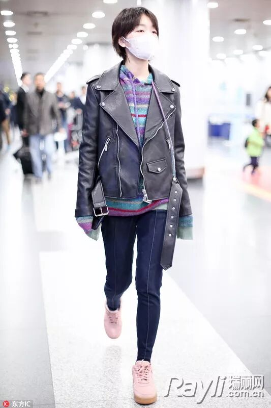 谁说皮衣只能搭配马丁靴?周冬雨好不容易少女了一回,穿的粉嫩嫩的还是在鞋上!可见Chunky Sneakers的独到魅力了!