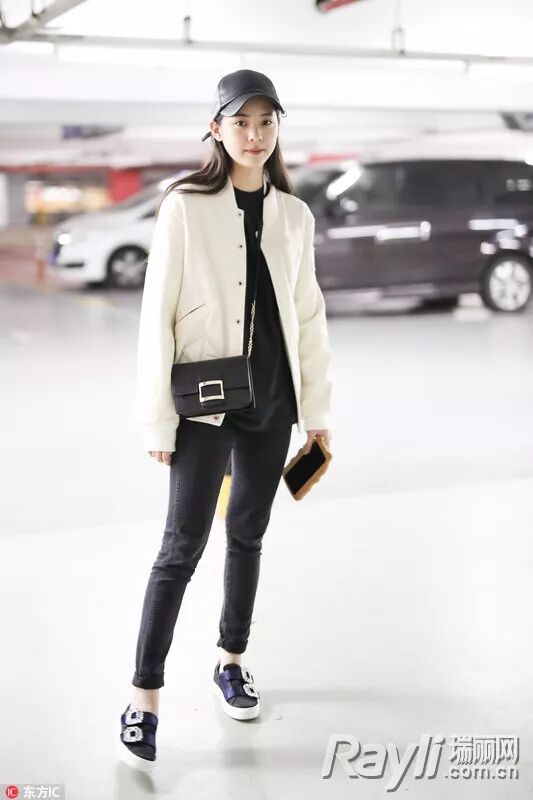 欧阳娜娜的缎面乐福鞋高雅又不失少女的轻快感。blingbling的方扣让她脚上生花,一副小公主的既视感~