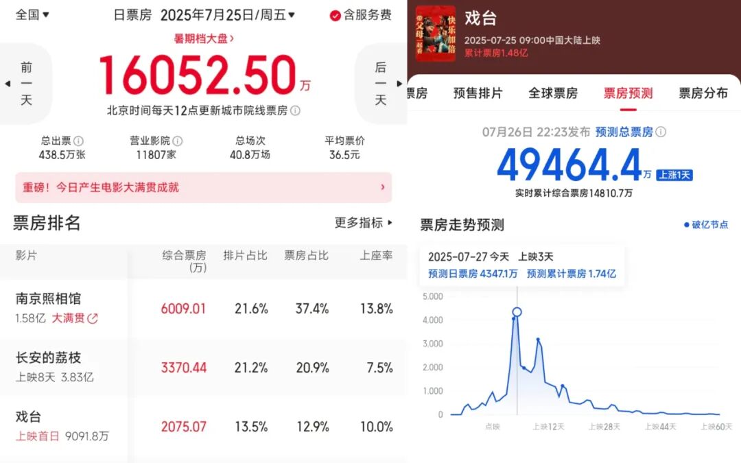 目前,《戏台》累计票房已突破1.48亿,猫眼预测其最终票房已接近5亿。