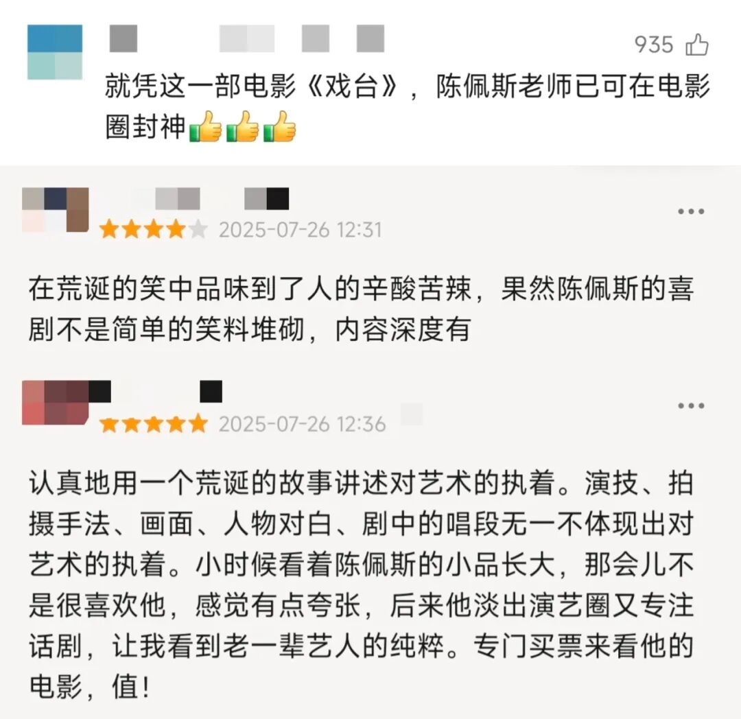 暑期档电影市场竞争正酣,由陈佩斯编剧、执导,陈佩斯、黄渤、姜武等主演,改编自经典话剧的《戏台》凭借扎实的质量和较好的口碑逐渐崭露头角。