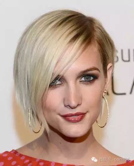 侧分短直发会比较有御姐范,像这样,一侧头发撩至耳后会更妩媚有女人味,短发剪碎呈错落状,个性、时尚又优雅,配合欧美独特的发色,气质很棒呢!