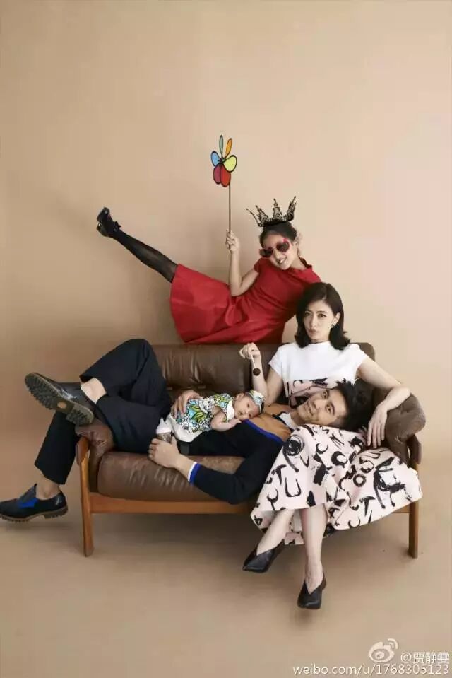 2014年贾静雯与小自己9岁的台湾演员修杰楷相恋,去年8月7日生下小女儿咘咘,从此在微博上开始频频晒娃,但大多只有小女儿,比如这样温馨的一家三口!