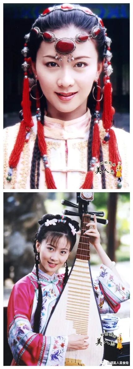 施明是个混血,细眉深目,高鼻薄唇,很有异域风情,所以经常被安排拍摄古装剧,出演大漠或者番邦女子,但中原妆造有点显老。