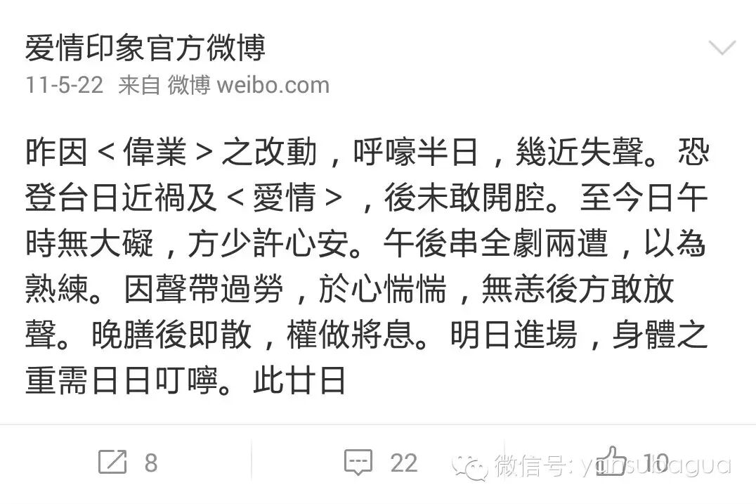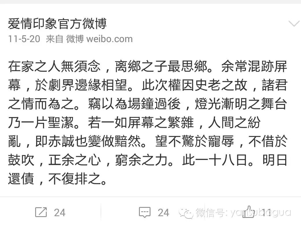 2011年在排演《爱情的印象》那段时间他开了微博
