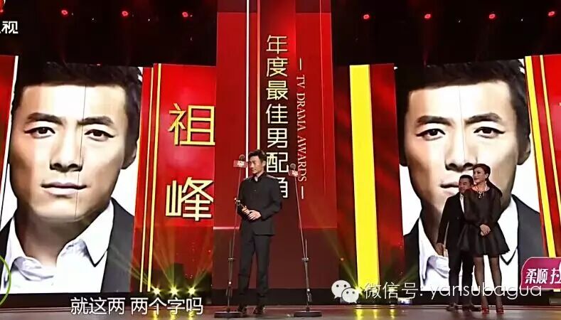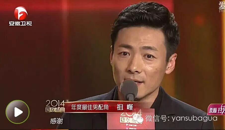2014年国剧盛典他得了最佳男配角这个奖,上台说了两个字"感谢"再深深地鞠了个躬,然后就没话说了