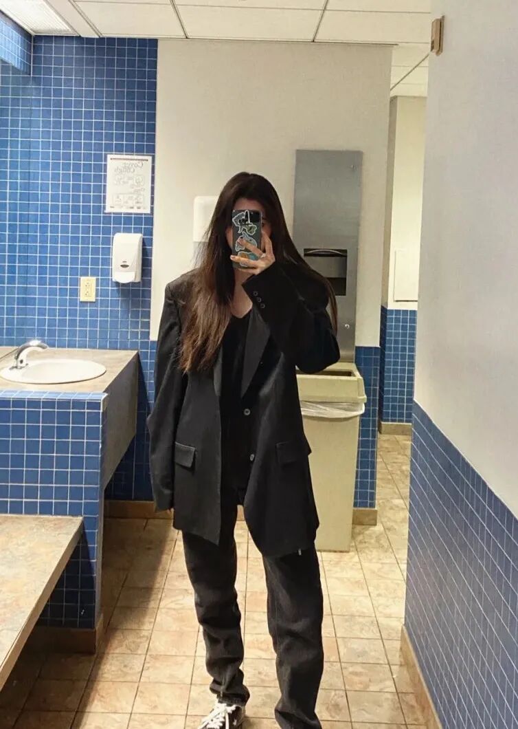 懒癌发作的你不妨在衣橱常备一套西装,无论是成套上身还是像娜比一样结合牛仔裤球鞋的休闲Look都能用得到。