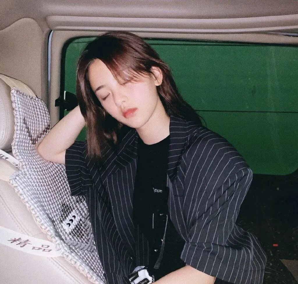 超越妹妹也是个西装爱好者,当然,除了纯黑款式的选择,也可以在细节上下下功夫,衬衫式的条纹小西装搭配棉T就很养眼。