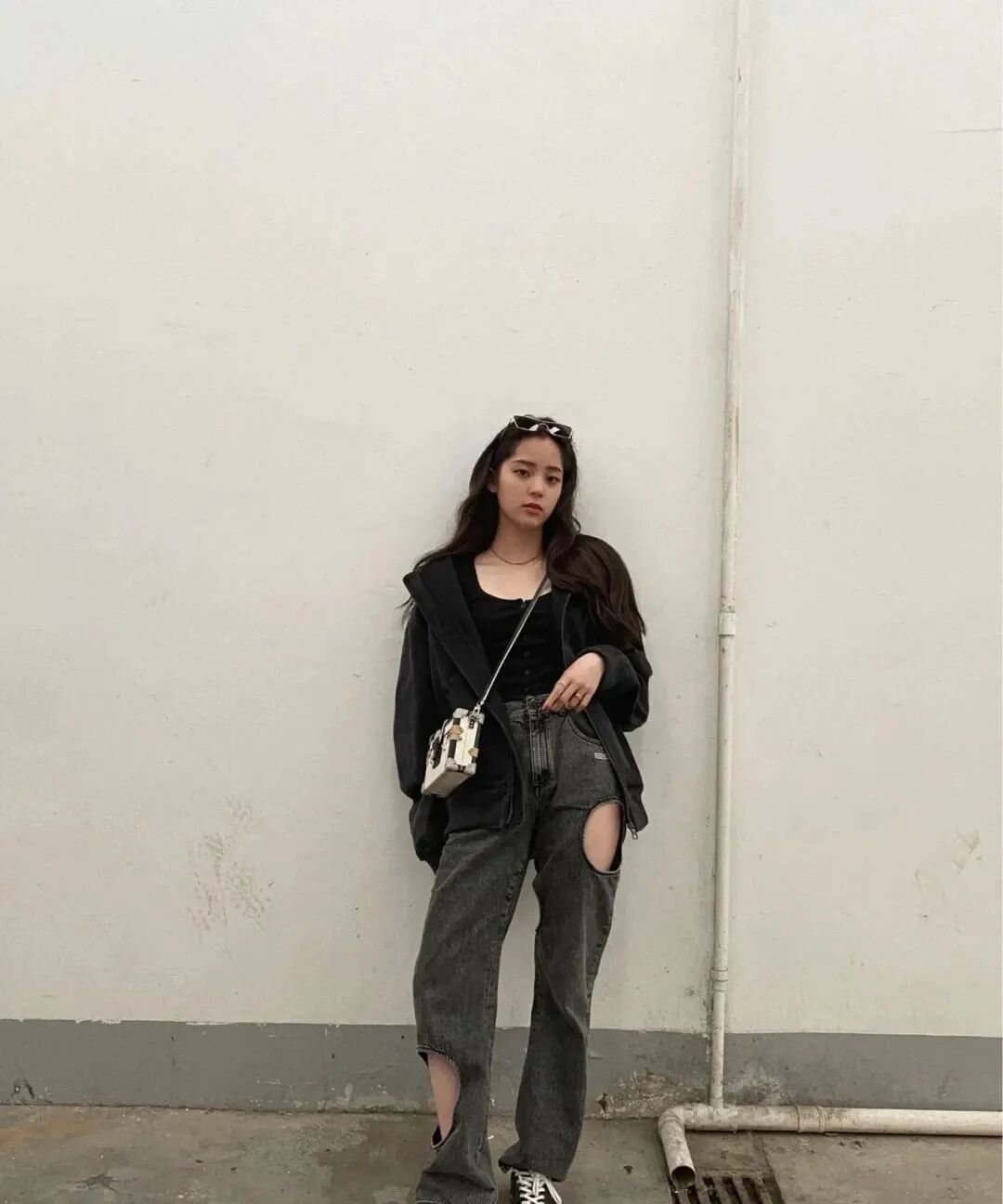 超越妹妹这身装扮中,袜子上这一点白是提亮整体装扮的关键,各种彩色的袜子也同样好用,而且屡试屡爽。