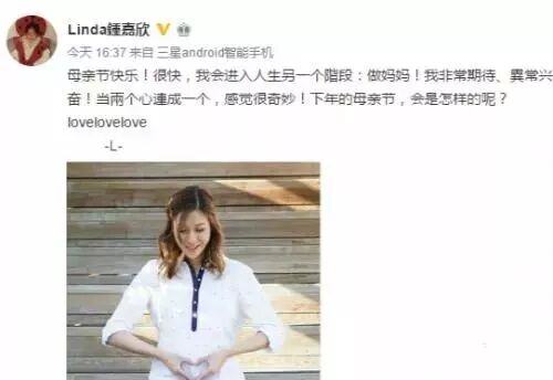 2018年5月13号,今天是母亲节,不过一大早打开手机就被“谢依霖怀孕”的消息刷屏了。28岁的谢依霖于今天早上幸福宣布自己怀孕啦,发文称“准妈妈的呐喊,我不是胖是怀孕了”
