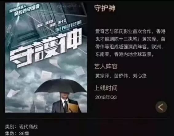 喺香港拍剧,基本上只有一间可以拣,鬼叫另外两间免费电视台唔争气,演员除左北上寻机会,仲可以同TVB有著千丝万缕关系嘅邵氏。最近又流出邵氏新剧介绍,剧名叫《守护神》,有黄宗泽、苗侨伟同刘心悠,搵来万绮雯老公鬼才编剧陈十三担任编剧,系一套36集嘅现代商战片。就咁睇阵容真系几吸引,仲话去欧洲、东南亚,香港内地全球取景添,同内地爱奇艺合作,製作费真系鬆手啲。