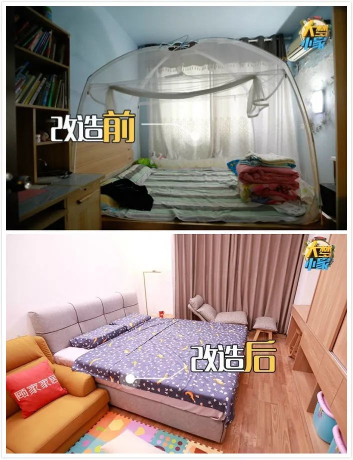卧室则是将原来的衣柜进行替换,并移动了位置。角落里增添的小书桌可以用来摆放物品。原本床头位置则改成了儿童活动区,宝宝和小妹妹就都拥有自己的小天地啦。