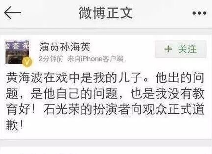 嫖娼事件后,很多明星都站出来替他向大众致歉,广大观众也都很是买账的,在2014年一次颁奖典礼上,孙海英作为颁奖嘉宾更是隔空喊话黄海波“你给我听好了,你做错了事情就要改,改好了我还演你的父亲,吕丽萍还演你妈。”可见孙海英是极其器重黄海波的,督促他可以改过自新。