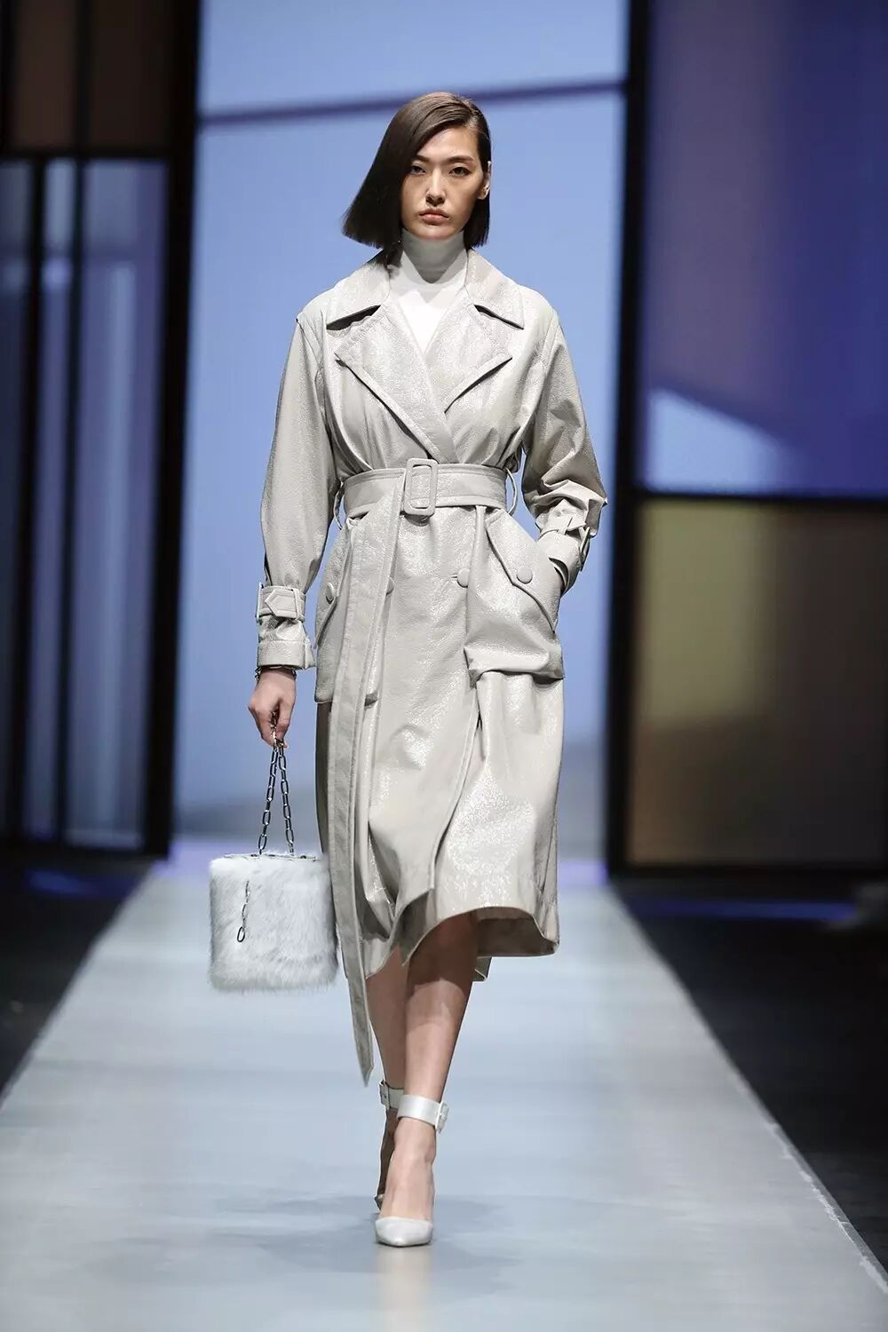 裁剪利落简洁的灰白色风衣,打造了优雅且沉着的“大女人”形象