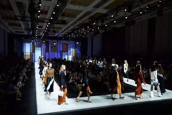 吕燕:其实没有特别的借鉴什么,主要是因为在我们这次的成衣系列中用到了很多不同材质与不同色彩的拼接,有块状有线条的。所以舞台的设计主要是跟这季的主题设计的,我们的T台背景也是由不同色彩和材质组成,比如有亚克力的,有网状的,有玻璃的等等,与我们整个系列相呼应。