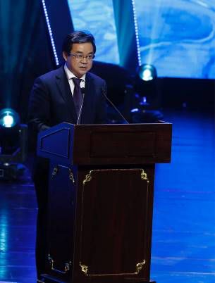 开幕式由来自央视的主持人白岩松(左)与钱江台主持人李玮 (右)主持