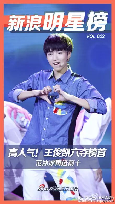 #新浪明星榜#第22期成绩新鲜出炉!@TFBOYS-王俊凯第6次夺得明星榜榜首,可谓实力强劲,人气王乘风破浪,再接再厉!