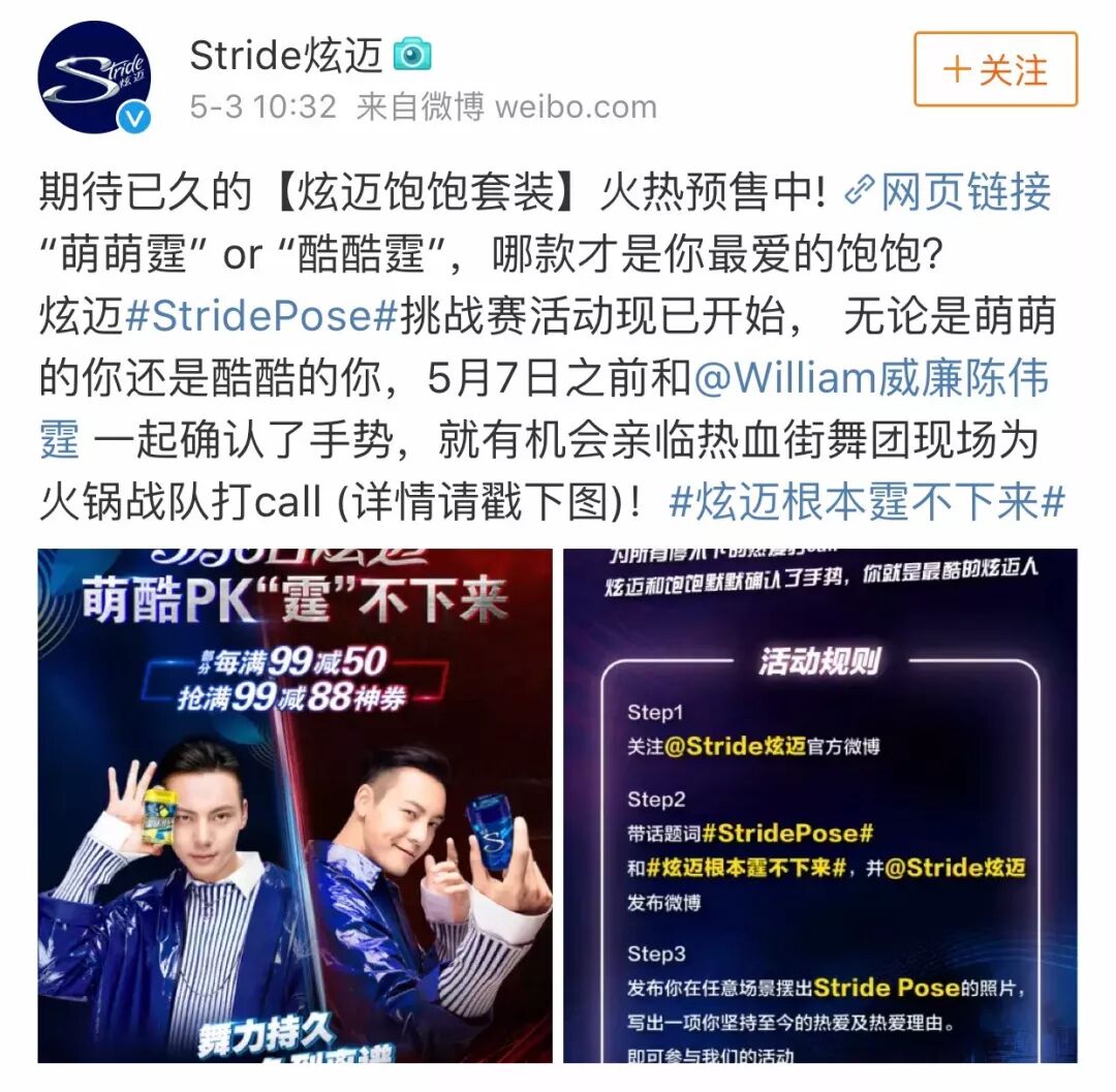 女皇们只要在任意场景摆出的Stride Pose的照片,并带话题发布在微博,则可参赛,优胜者可以亲临《热血街舞团》为陈伟霆还有他的火锅战队打CALL。
