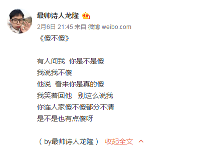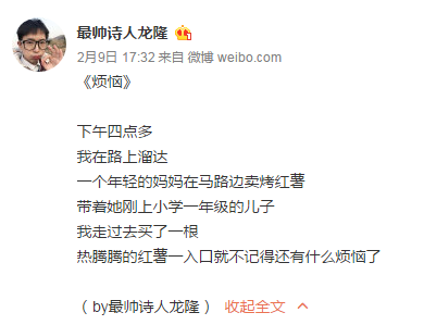 问及,1 年 50 万的价格是否合理,@最帅诗人龙隆 称,这个价格已经很便宜了,因为他的诗歌和颜值一流,以后说不定要涨价。