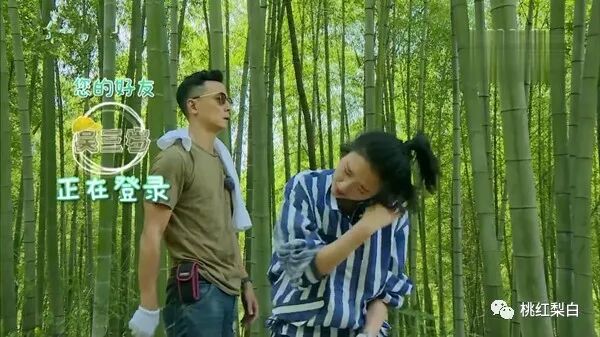 砍竹子时,吴彦祖会拿小树枝悄悄戳唐艺昕的头发。在唐艺昕以为是小虫子惊慌失措时他又会躲在背后偷笑。