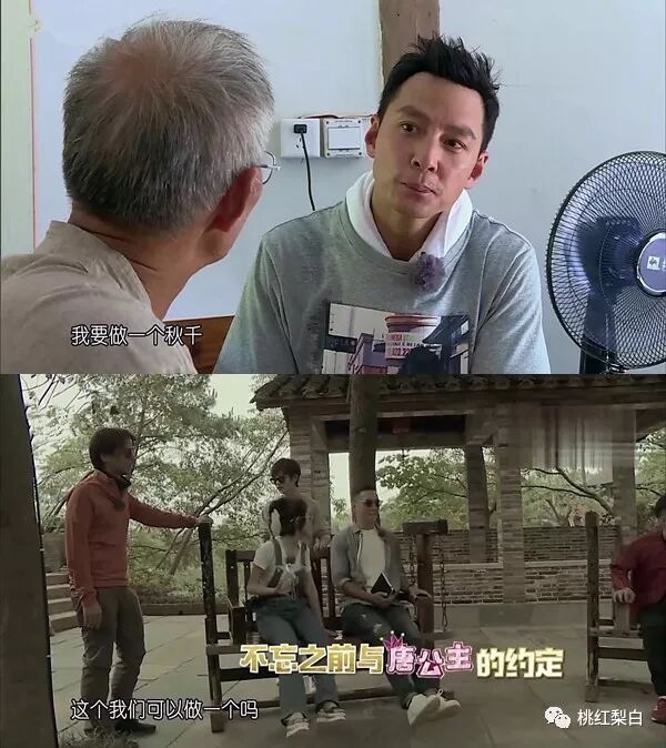 第二期中,房子已建成,但是吴彦祖却记得和唐艺昕的约定,亲手为唐艺昕打造了一个秋千!(嫉妒使我质壁分离)