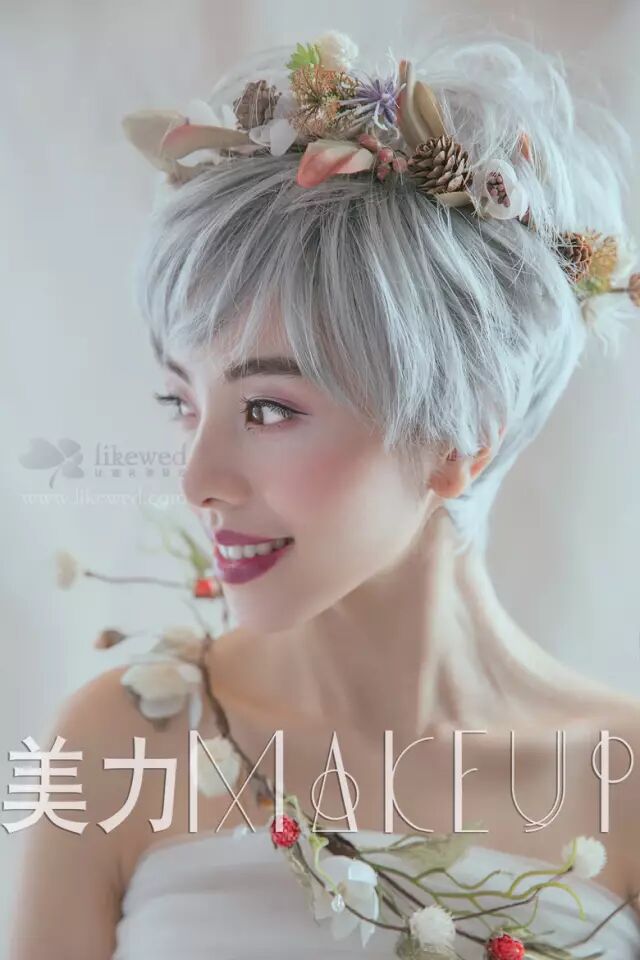 又有小姑娘问了,超短发好看是好看,可超短发怎么做新娘造型呢?
