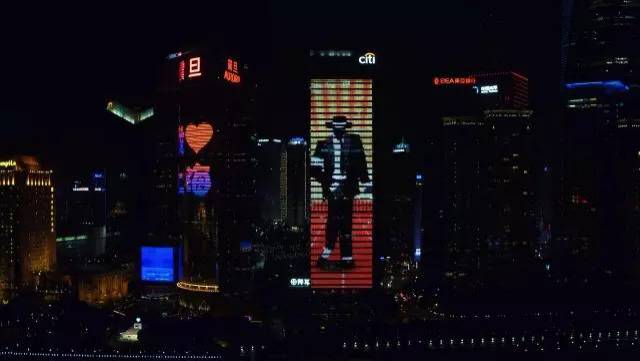 2016年6月25日Michael Jackson逝世七周年纪念日,他的影像史无前例地出现在上海外滩花旗大厦的巨屏中。