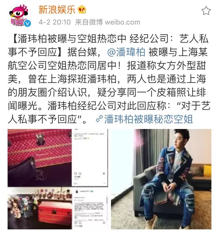 有媒体爆料:潘玮柏与这个空姐是在上海的朋友圈中认识,之前空姐还曾到潘玮柏工作场合探班