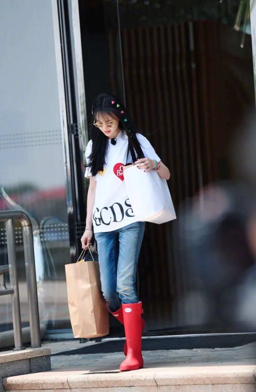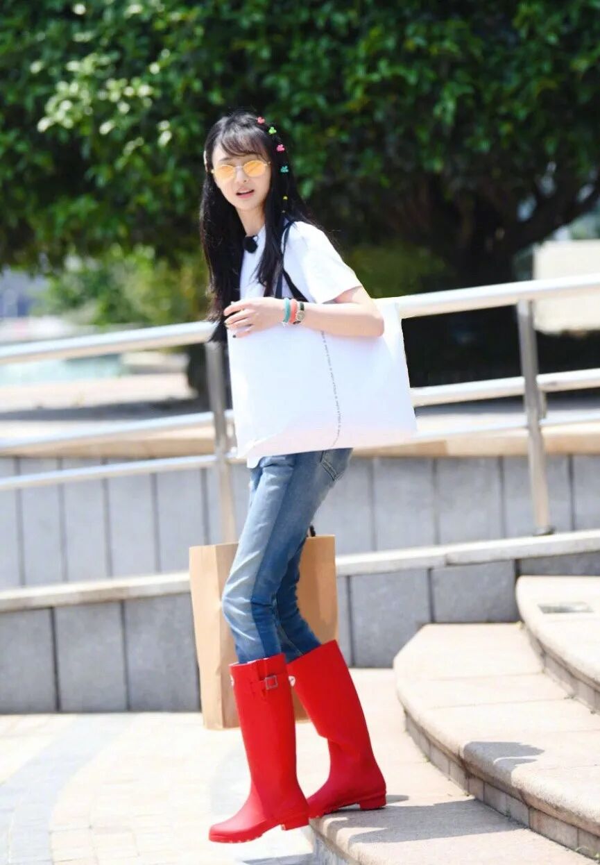彩虹发夹和手腕的彩色发圈,可可爱爱鬼马风,连红雨靴都能驾驭的这么好,吹爆今年爽妹的衣品!