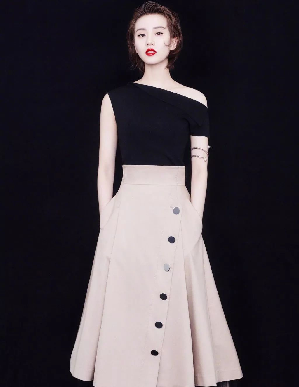 再搭配一抹大红唇更显优雅与大气