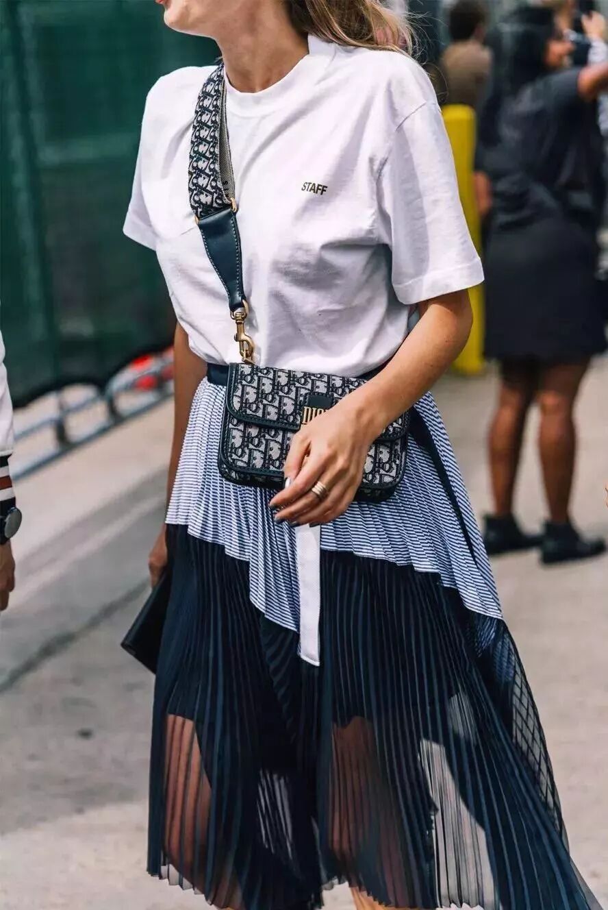 现在这种天气最常选择的LOOK是什么呢?当然是T恤和半裙这对CP了,不仅休闲时髦,还能显瘦显高,更是让人想要天天都穿!